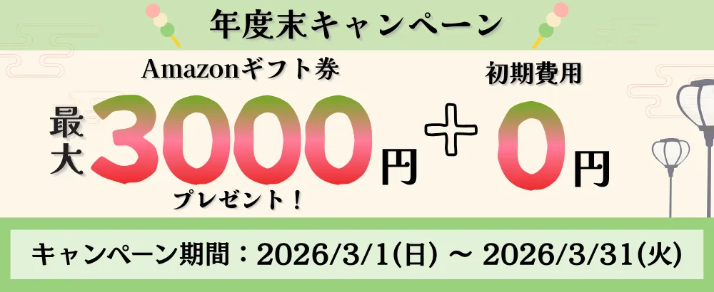 初期費用無料の上、Amazonギフト券を最大3,000円分プレゼントさせていただきますので、ぜひこの機会に対象サービスへお申込みください。